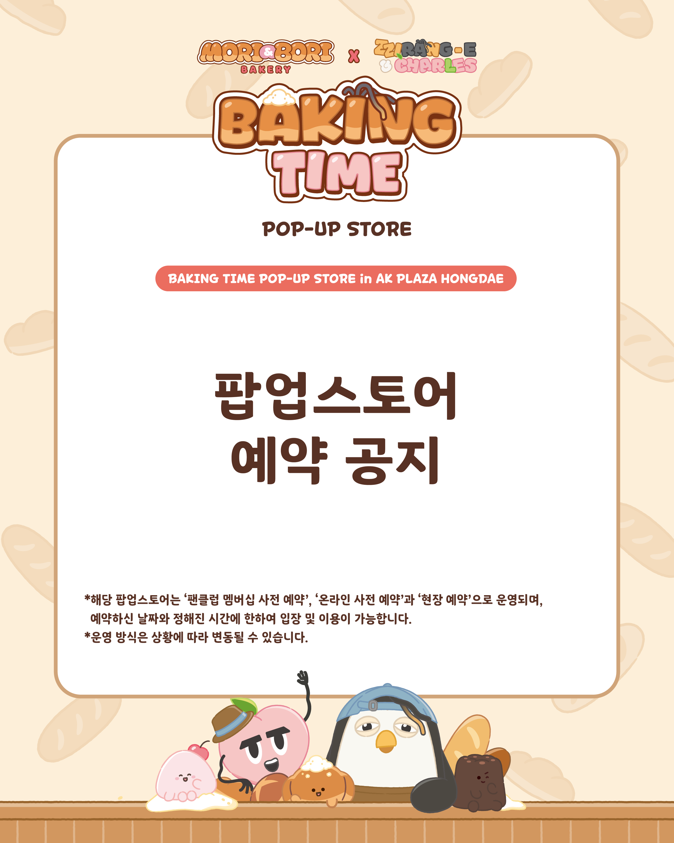 [안내] ZZirang-e & Charles X MoriBori Bakery POP-UP STORE: BAKING TIME 예약 방법 및 유의사항
