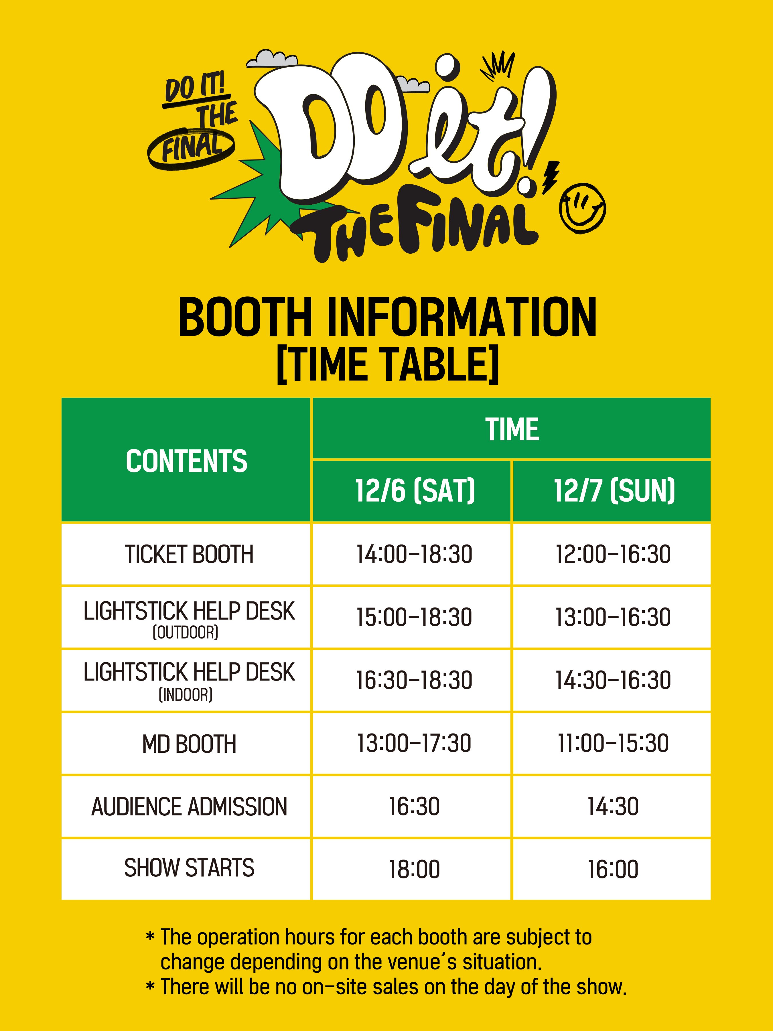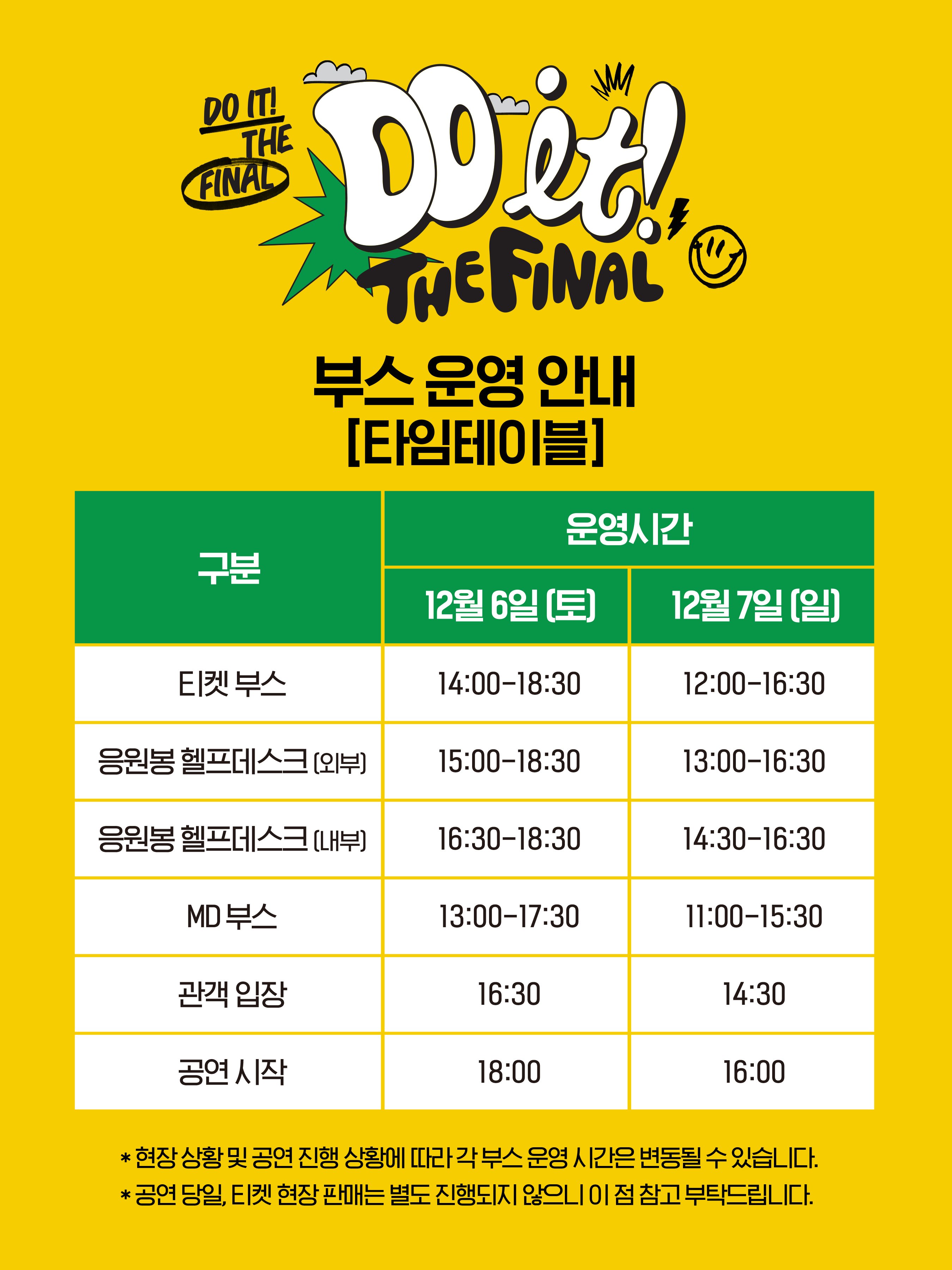 2025 DOH KYUNG SOO ASIA CONCERT TOUR <DO it! THE FINAL> 부스 운영 타임테이블 관련하여 아래와 같이 안내드립니다.
