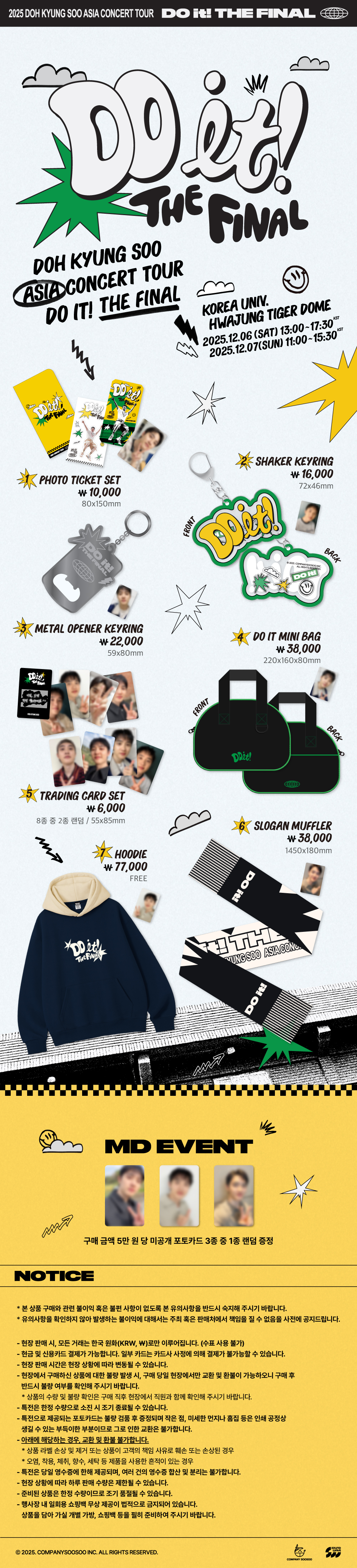 2025 DOH KYUNG SOO ASIA CONCERT TOUR <DO it! THE FINAL> OFFCIAL MD 관련하여 아래와 같이 안내드립니다.